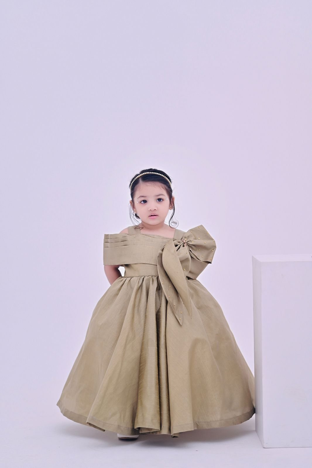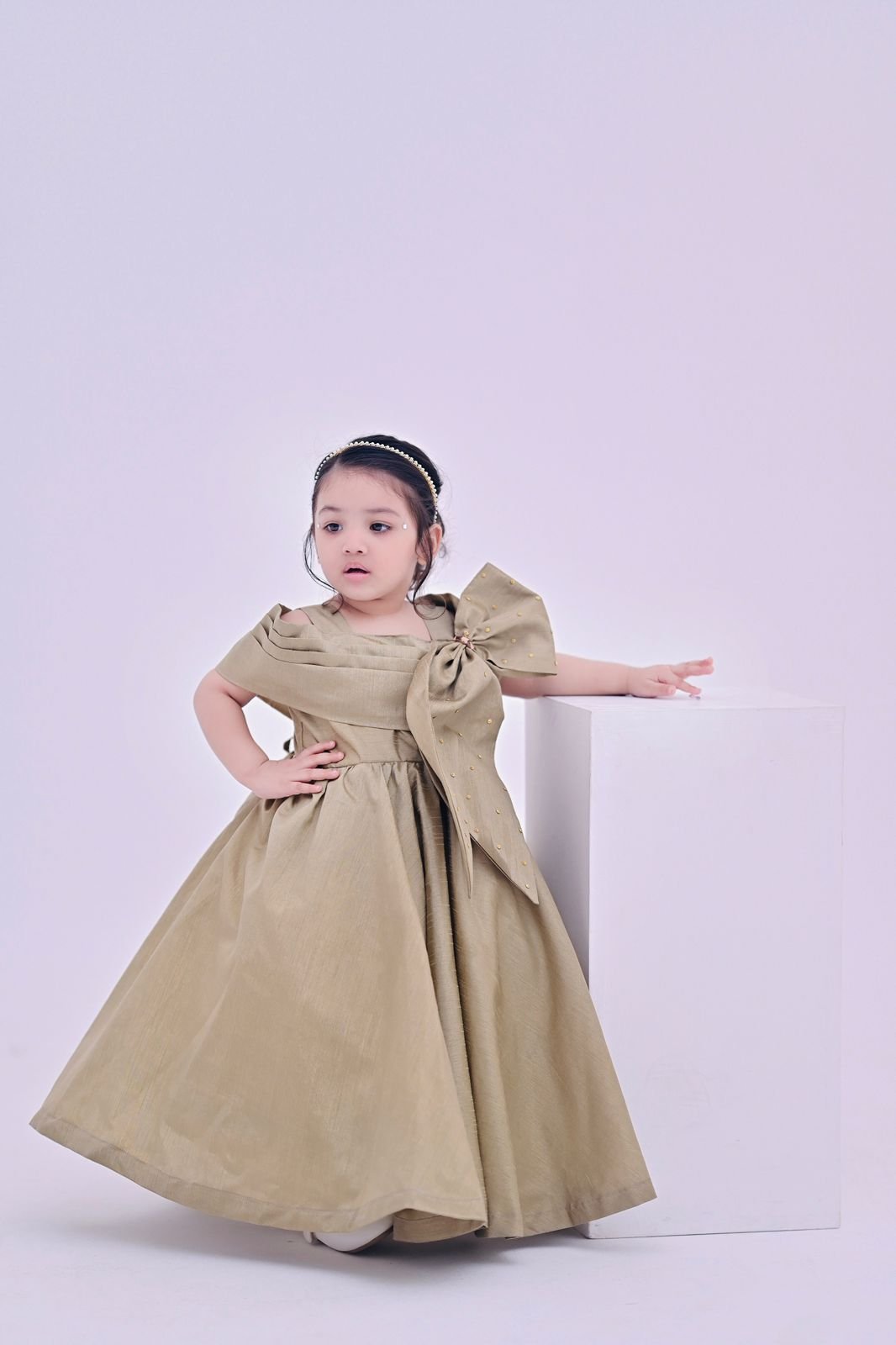 Shine bright like a star! ⭐ Our golden maxi gown for baby girls is a showstopper 💃