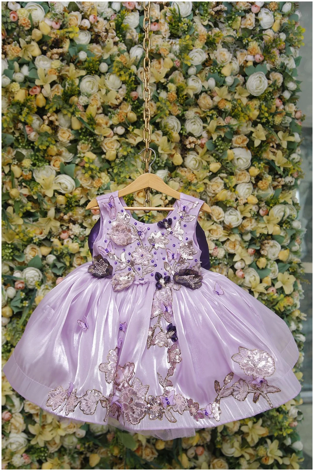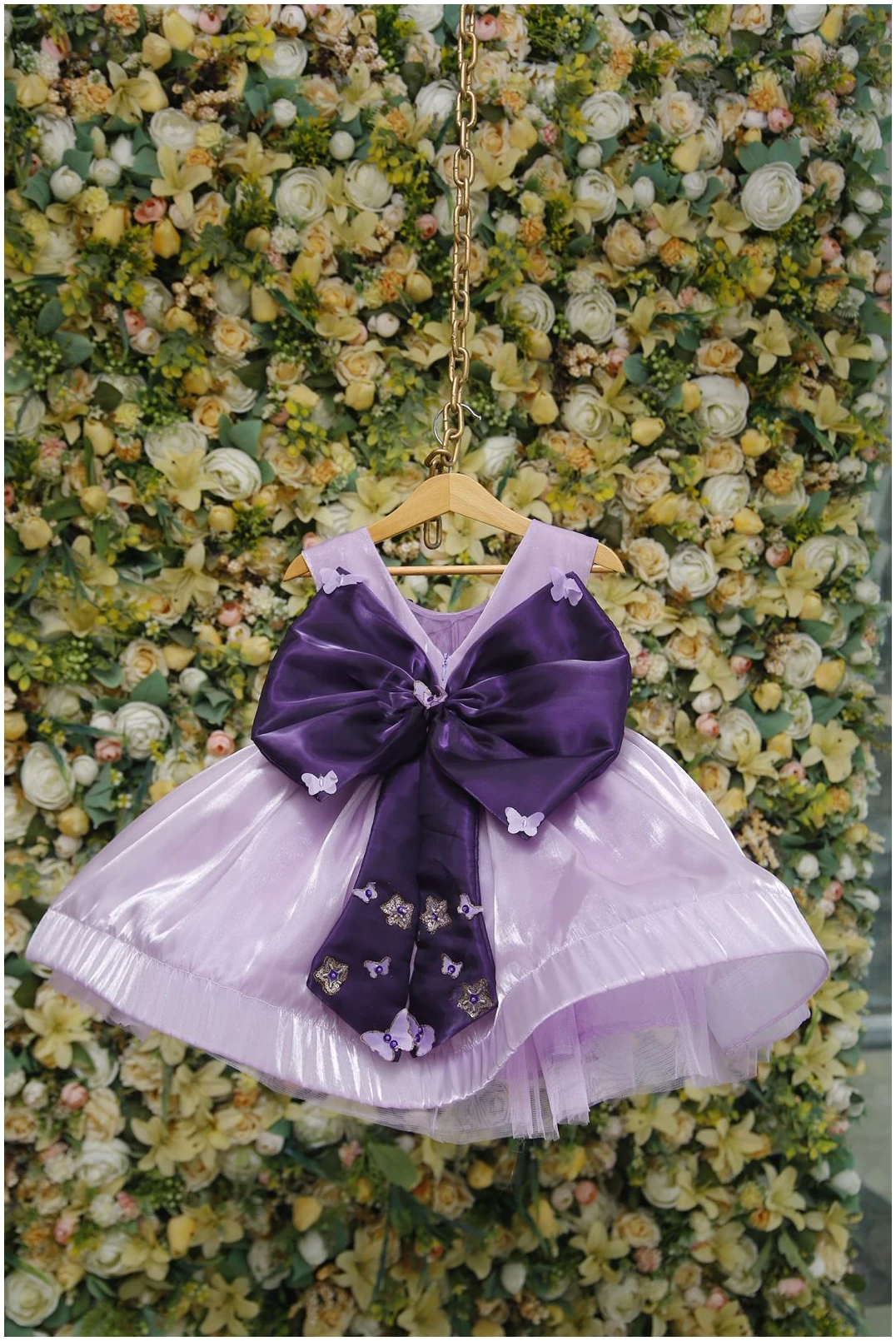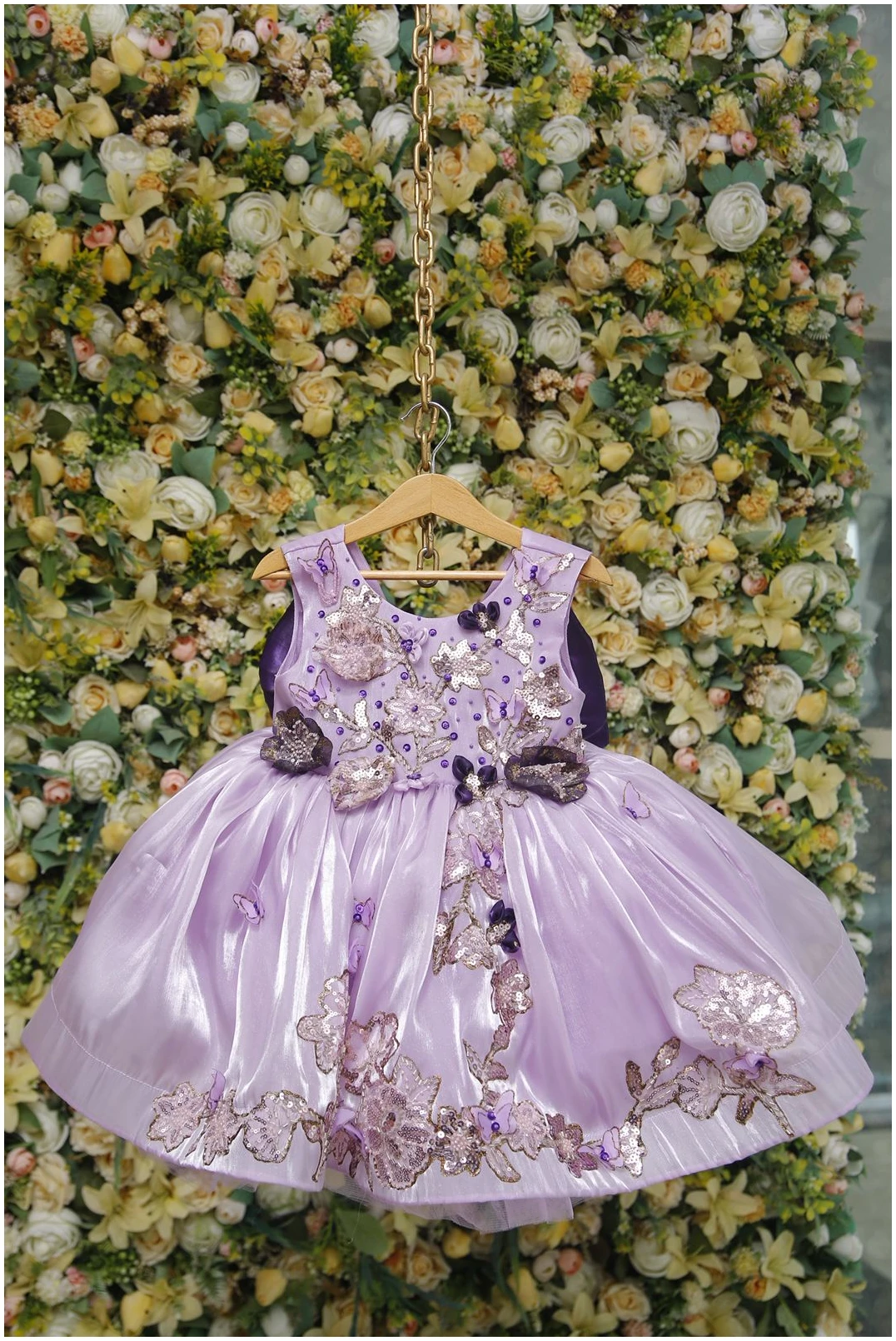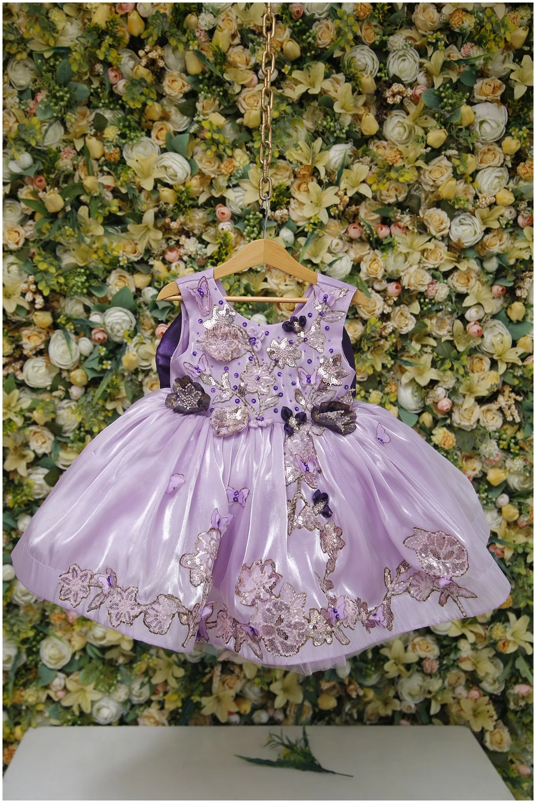 Experience the beauty of Korean silk in this lilac-hued masterpiece, featuring full embroidered embellishments and delicate 3D flowers. The plum-colored butterfly back bow is the perfect finishing touch. 🌟👗💃