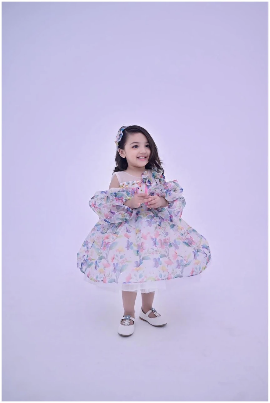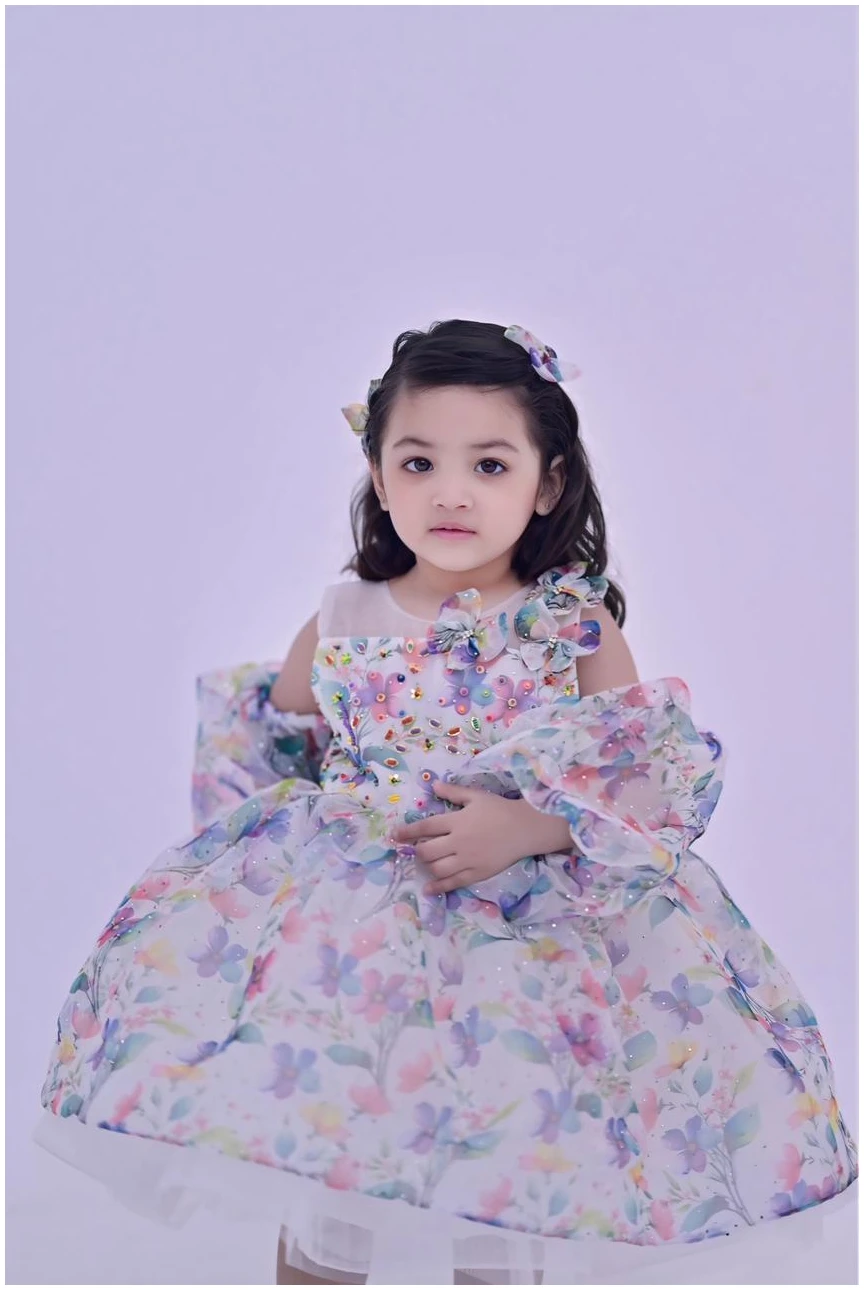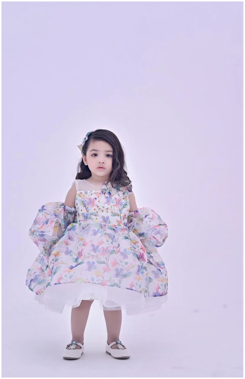 Add a touch of glamour to your wardrobe with this beautiful printed organza short frock, featuring delicate beading and a show-stopping back bow. 💎