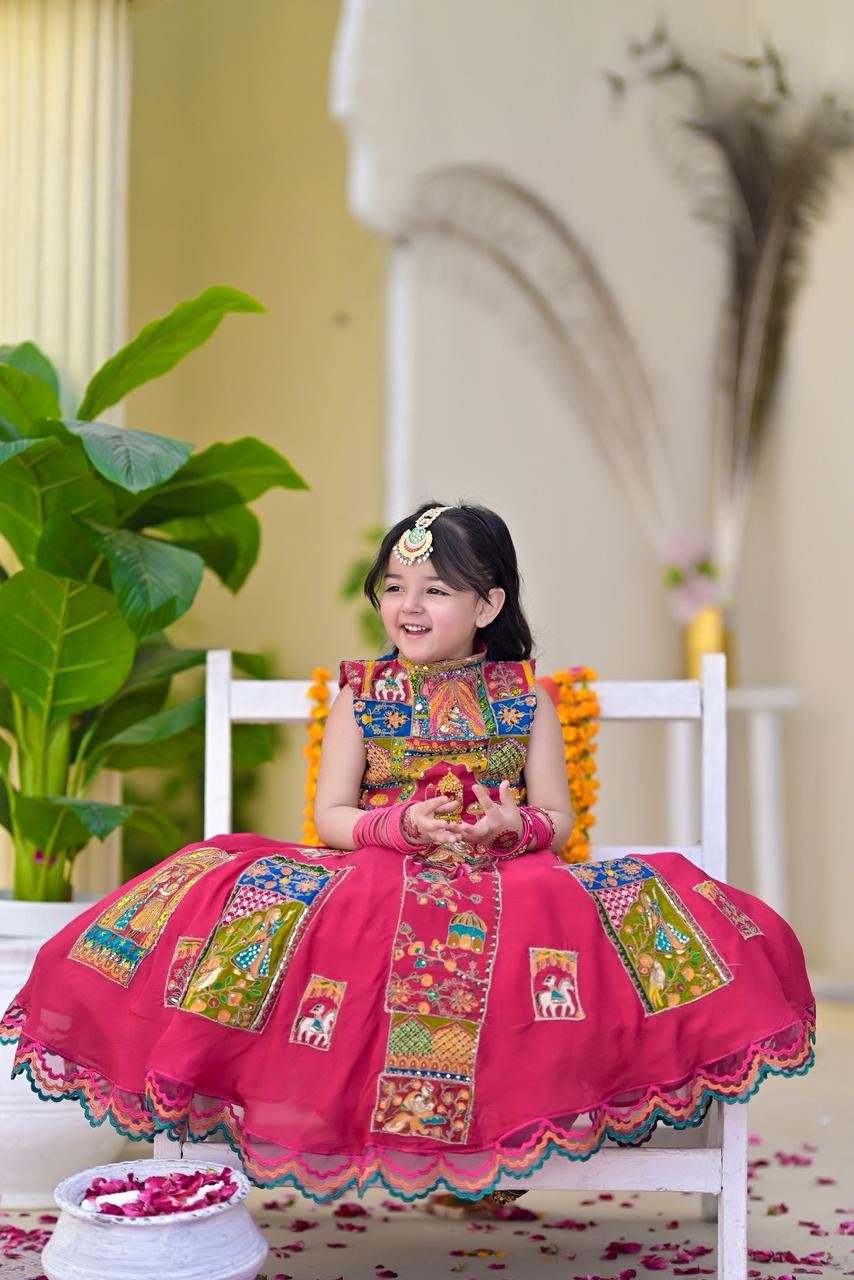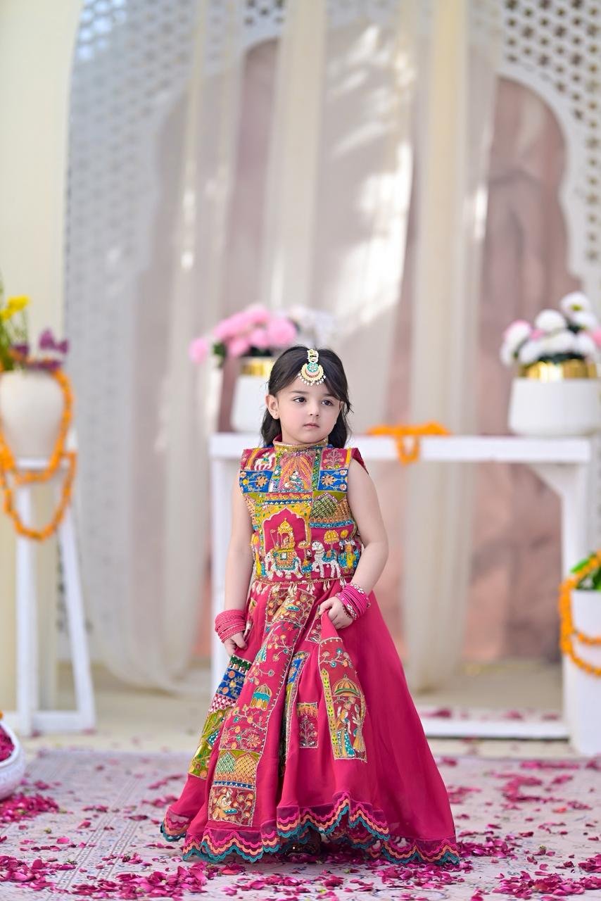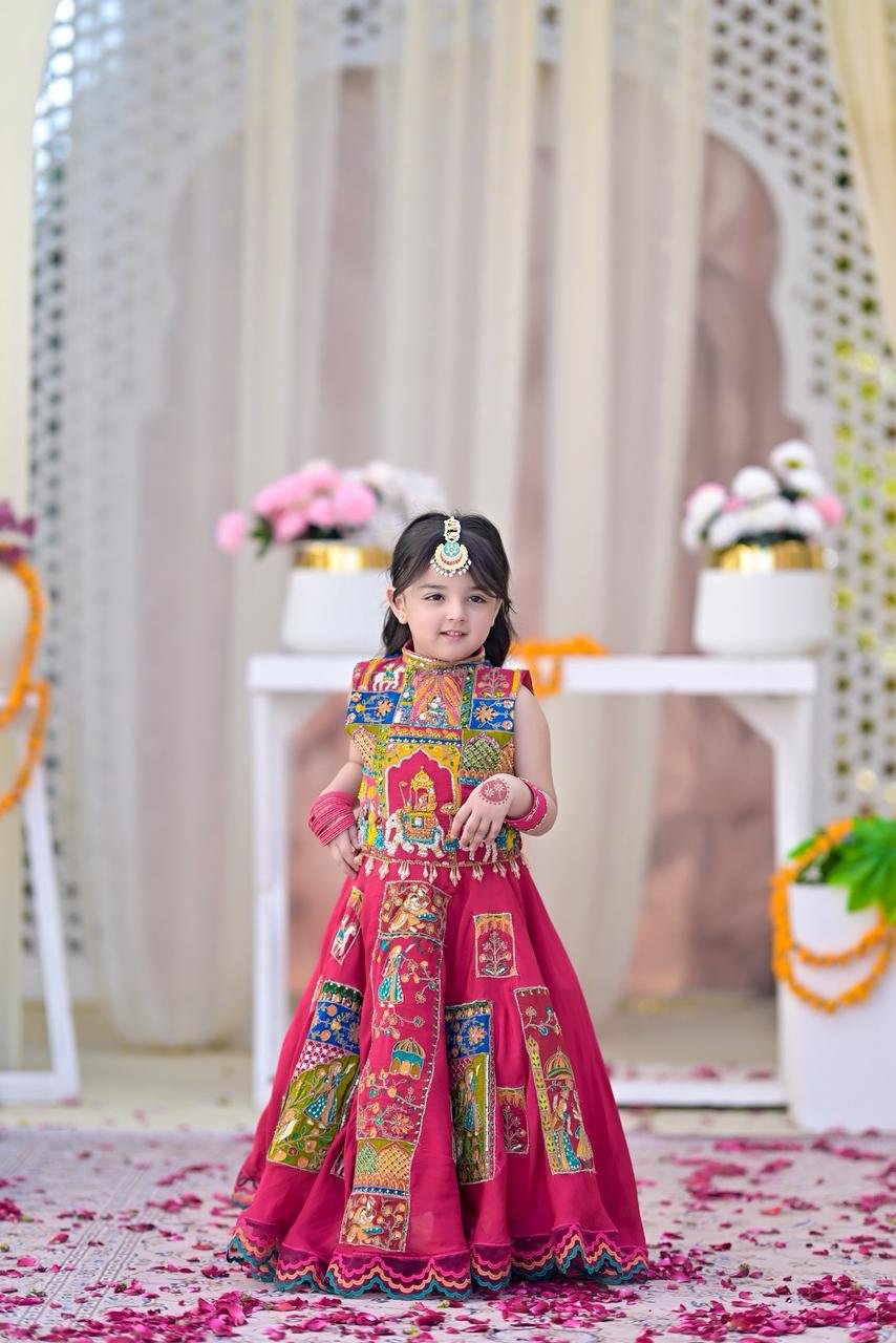 Bring festive charm to your little one’s wardrobe with our Handcrafted Traditional “ Lehnga Choli, a masterpiece inspired by vibrant South Asian culture. This stunning outfit features a bright mustard base adorned with intricate hand-embroidered , sequins, and multicolored thread detailing.