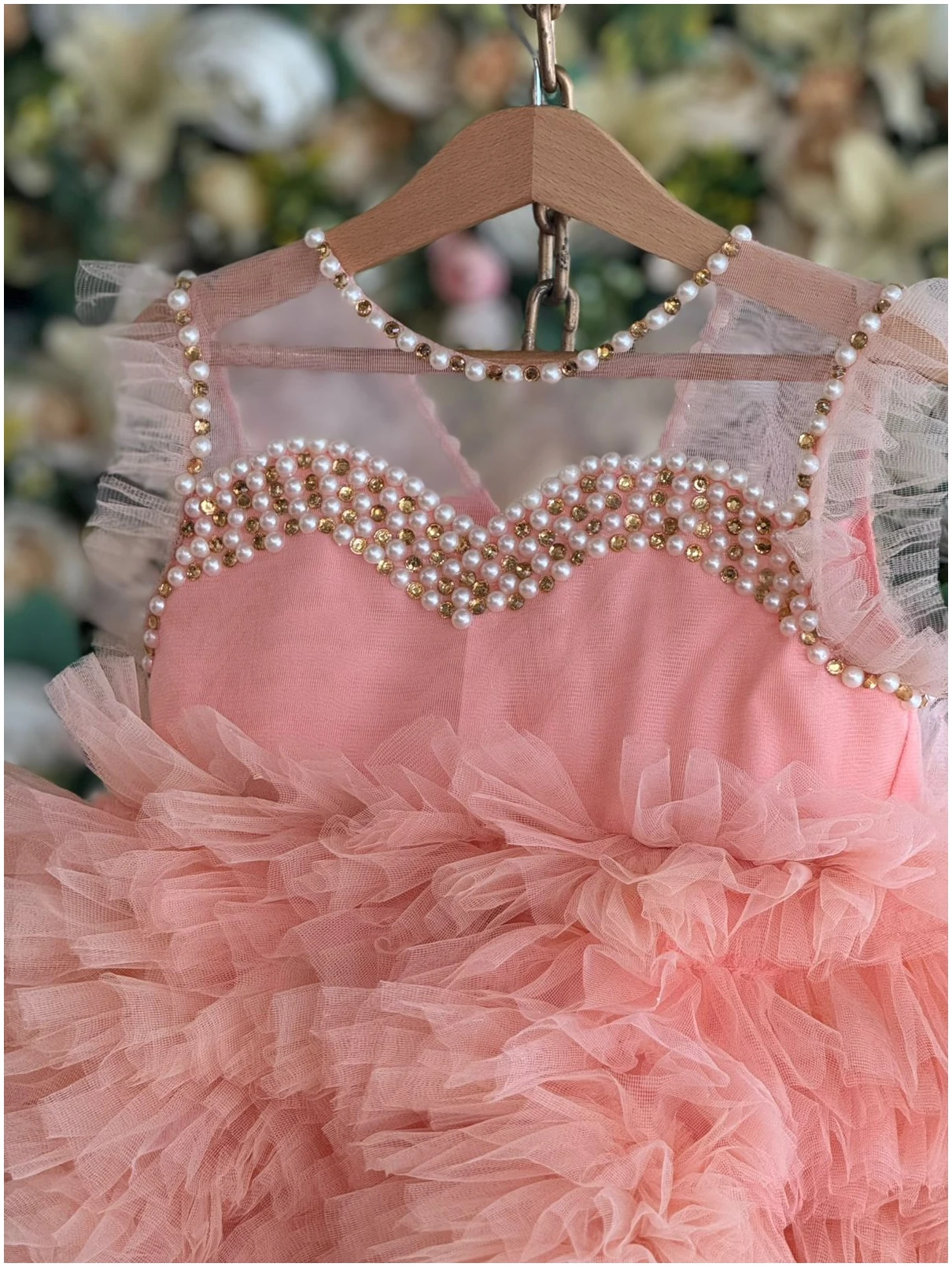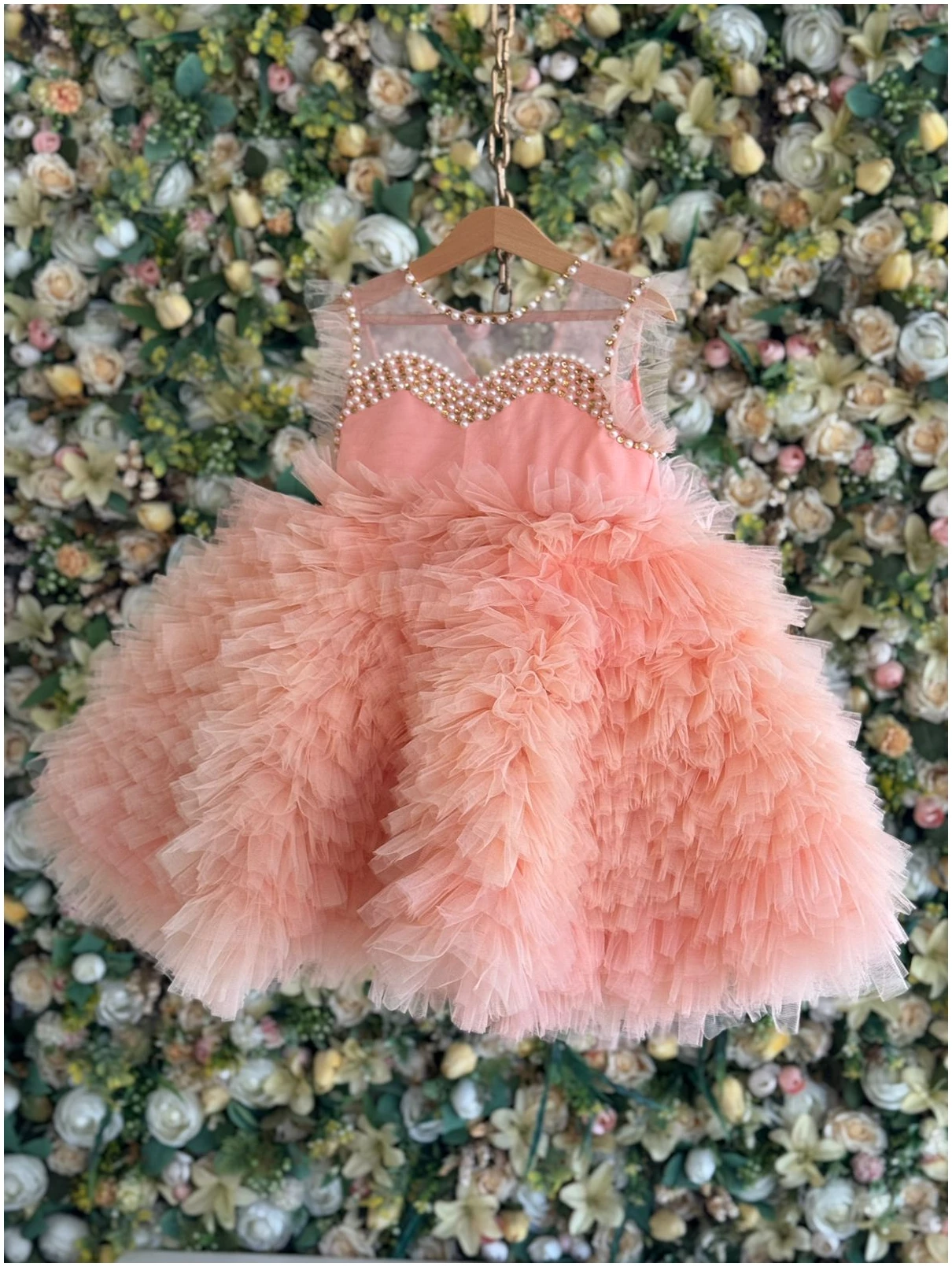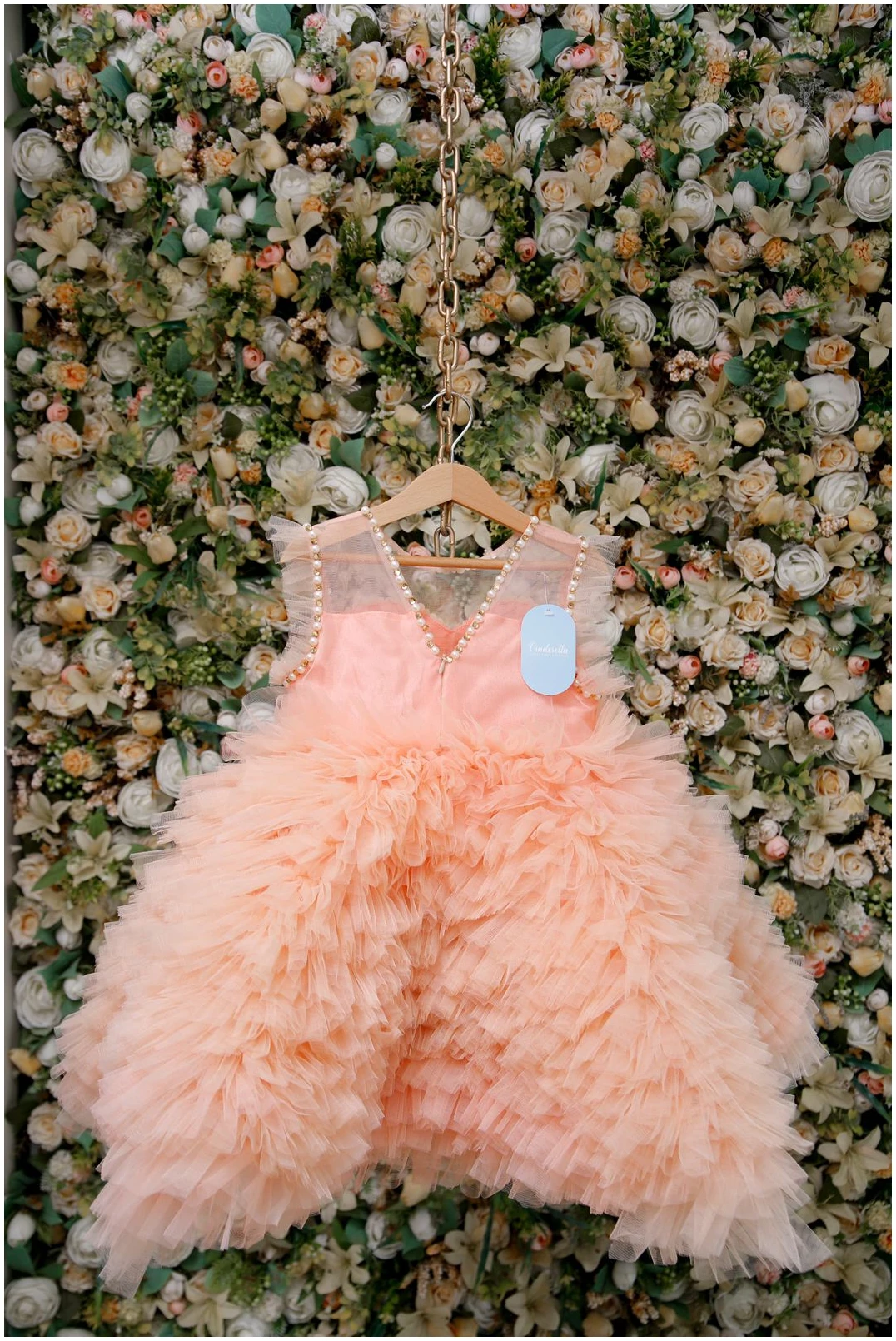 Add a touch of glamour to your wardrobe with this beautiful printed organza short frock, featuring delicate beading and a show-stopping back bow. 💎