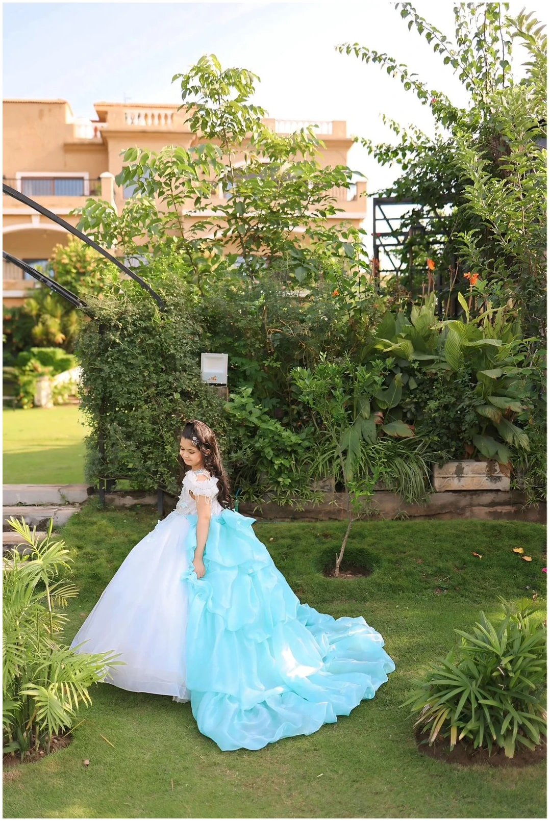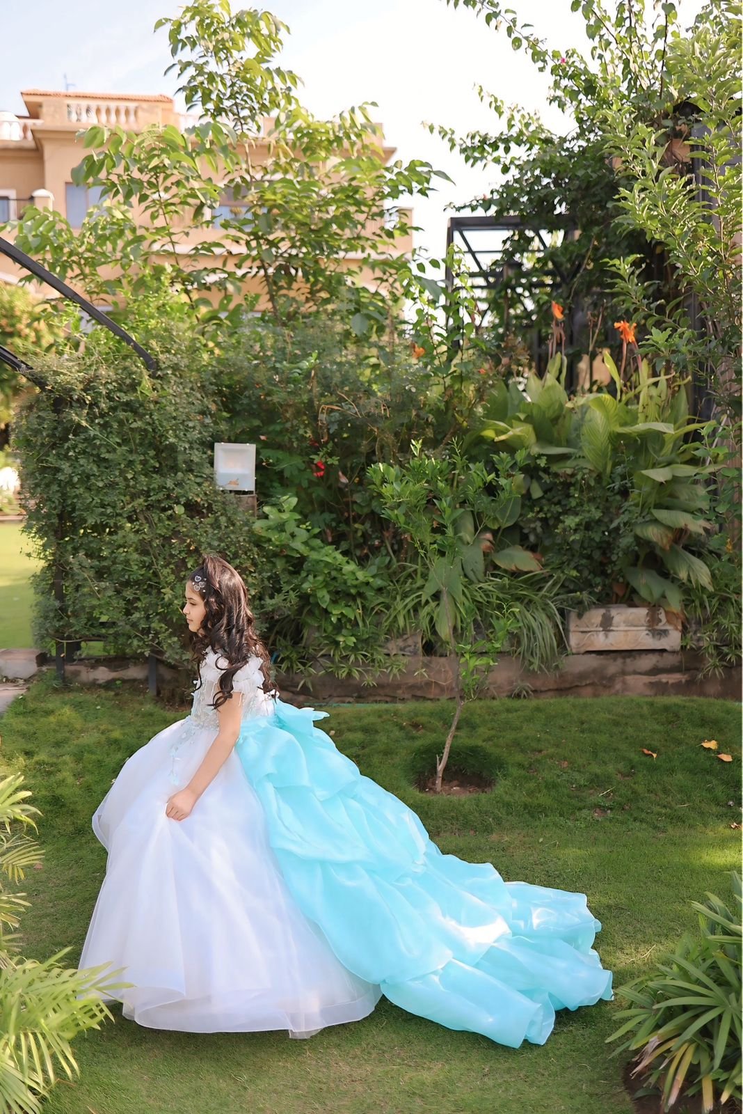 Perfect for birthday shoots, weddings, and special celebrations, this dress turns every moment into a royal memory. With delicate embellishments and a voluminous flair, it’s more than just a dress — it’s a dream come true.
